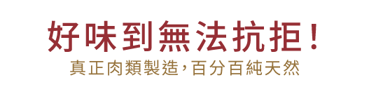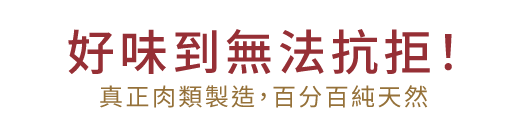使用100%健康,純淨及可人類食用的成分,並且於人類食品製造的工場生產