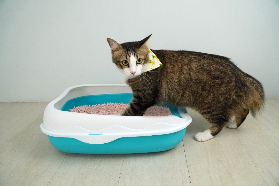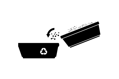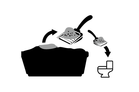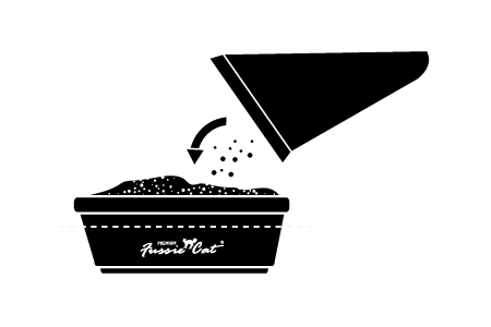 將一層約2吋厚度的高竇貓豆腐貓砂覆蓋在乾淨的貓便盤中。高竇貓豆腐貓砂不但天然除臭更有效控制氣味。
